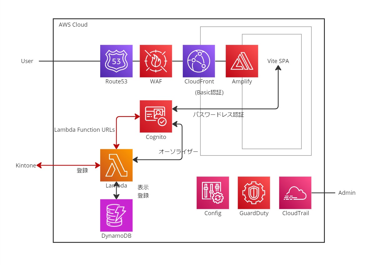 React(Vite / Next.js)を用いたインタラクティブなフロントエンド開発と、AWS Amplifyを活用した迅速なバックエンド構築が可能です。 データはDynamoDBを基本としつつ、要件に応じてKintoneなどの外部DB連携や、Lambdaを用いた柔軟なAPI開発も経験しています。 セキュリティ面では、WAFやCloudFrontによる防御策の実装、GuardDuty等の監視サービスを用いた継続的なセキュリティチェックも可能です。